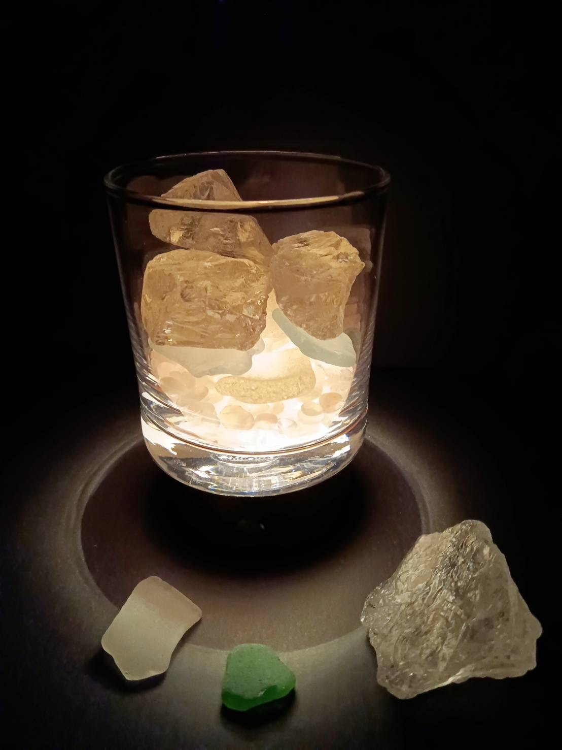 rinyuzのグラスデザインは底面から幅が広くなっていくタイプのグラスでLEDライトの光が放射状に広がります。